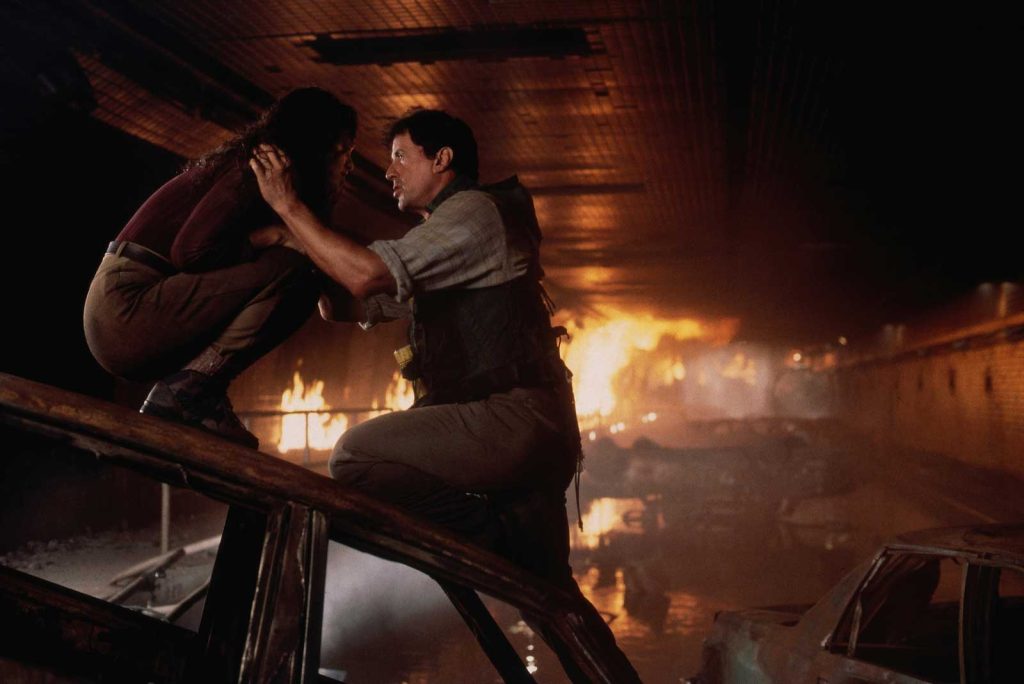 …wäre da nicht Taxifahrer Kit Latura (Sylvester Stallone) – der richtige Mann am richtigen Ort zur richtigen Zeit. Der erreicht den Tunnel nicht nur zum Zeitpunkt der Explosion, er war sogar bis vor Kurzem noch Einsatzleiter des Katastrophenschutzes. Als dieser leitete er einst eine Übung innerhalb des Tunnels, für den unwahrscheinlichen Fall, dass eines Tages ein solcher Unfall stattfinden würde. Die Welt ist in Hollywood halt ein Dorf. Blöd natürlich, dass er einst eine falsche Entscheidung traf, die einige seiner Kollegen das Leben kosten sollte, woraufhin er zum Taxifahrer degradiert wurde. Blöd auch, dass der jetzige Einsatzleiter (Mark Rolston) ein arrogantes Arschloch ist, der keinen Pfifferling auf die Meinung Laturas gibt. Pech für den Einsatzleiter, denn so gibt er fix den Löffel ab und bringt Latura somit wieder ins Spiel. Der sieht nur einen Weg, die Gefangenen aus dem Inferno zu retten. Er muss selbst durch den Lüftungsschacht hinein gehen…